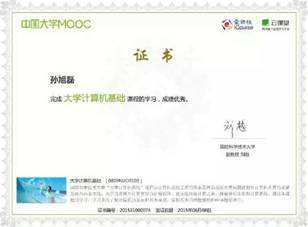 而孙旭磊也是同样。他在接触了《大学计算机基础》这门MOOC课程后,每天都惦记着课程更新,一旦更新就赶紧去学,课程结束时,轻而易举就通过了考试并拿到了95.6的高分。孙爸爸说,在他看来,MOOC课程的优秀证书点燃了儿子学习编程的热情,之后学习计算机就更卖力了。