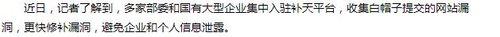 “企业注册后,我们收到漏洞后可以第一时间联系到他们!”补天负责人林伟介绍,一些注册企业,入驻第二天就收到了白帽子发来的漏洞报告。而没有注册的企业,只能通过微博、新闻等方式通知,大大影响企业修补漏洞的效率。