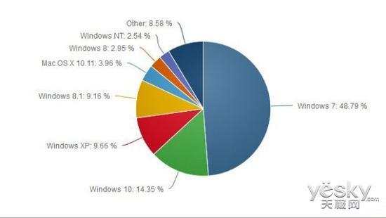 据外媒报道,市场统计机构NetMarketShare最新统计数据,2016年4月Windows仍是全球桌面操作系统的霸主,继续领先Mac OS和Linux,但Windows总份额首次降至90%以下。其中Windows7份额跌破50%,仅48.79%,而且Windows10市场份额已达14.35%。