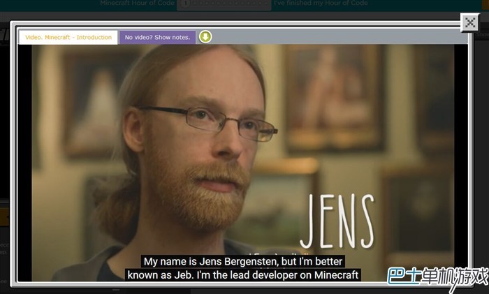 教学开始会有一段讲解视频,我们已在上方进行分享。当中内容主要是游戏首席开发者Jens Bergensten讲述自己小时候学习编程的动力,并陈述玩家接下来将要进行的操作,通过移动方块的方式来填充代码,从概念上了解Javascript的编程过程。