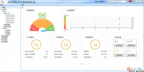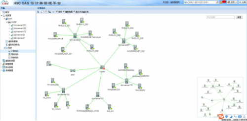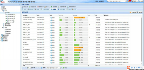 开源KVM重点关注的是虚拟化内核的实现,在可管理性方面远远没有达到商用的级别,而且,在性能监控、邮件、短信告警、API接口等企业级特性完全是一片空白。CAS提供了简洁易用的图形化操作界面,为IT系统管理员提供了直观的虚拟化环境视图。