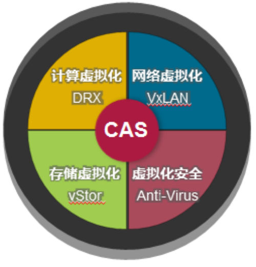 CAS借助华三通信自己成熟的网络产品与技术,并与第三方存储及安全厂商合作,形成了业界领先的全融合解决方案。例如:H3C CAS云计算管理平台融合了独创的DRX(Dynamic Resource eXtension,动态资源扩展)、分布式存储组件vStor、业界落地最为广泛的VxAN解决方案和轻代理/无代理防病毒解决方案,真正实现了计算、存储、网络和安全虚拟化的全面融合。下面对上述方案作详细分析。