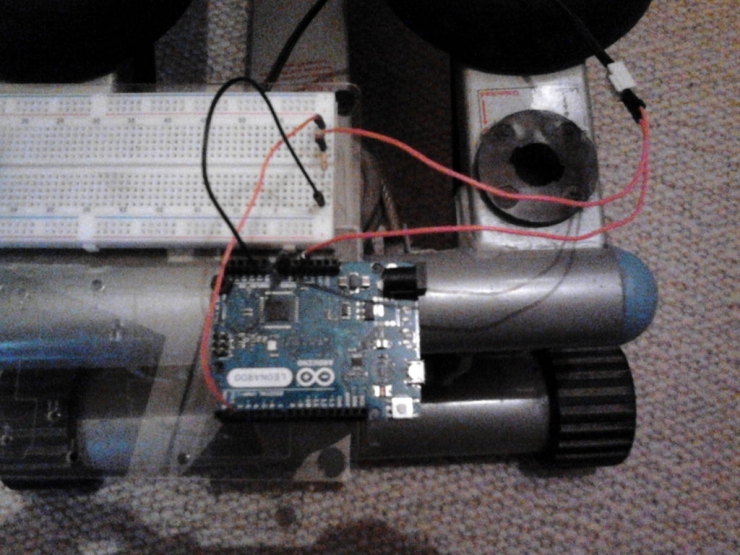最后,把踏步机上的接第二根跨接线接在Arduino的5V引脚上。