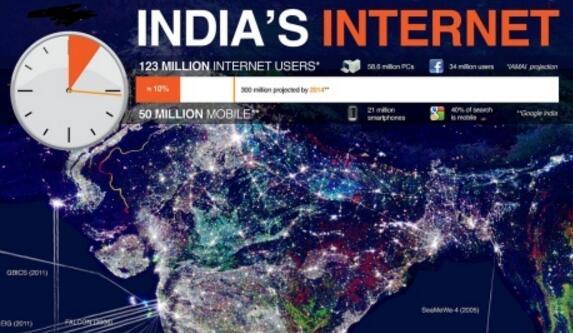 世界银行的最新报告显示,在印度的13亿人口中(2014年数据),依然有10亿人口无网可上。从报告中的数据我们还可得出,印度的政府部门互联网渗透率很高,但在中小企业中互联网就成了稀罕事。