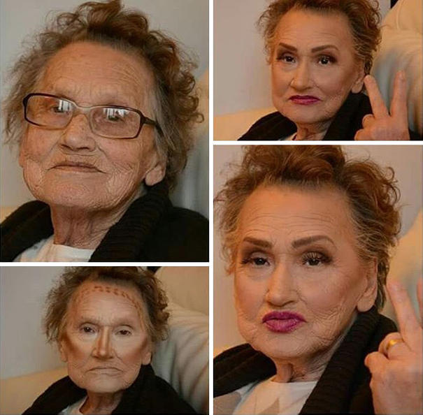 近日,一组老奶奶的化妆对比照风靡社交网络,得到了网友的一致好评。照片上的这位老人名叫利维亚,来自克罗地亚,今年已经八十岁了。虽然年事已高,但她却依然有一颗年轻的心,希望通过化妆来改变自己的外表,追赶潮流。如今利维亚已经实现了自己的心愿,化妆后的她不仅看上去年轻了二十岁,还成为了网红,受到网友的热捧。网友们给她取了一个贴切的昵称Glam-Ma,意为“魅力老妈”。