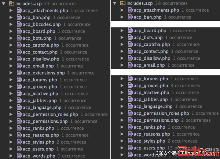 系统对check_form_key()函数和add_form_key()函数进行了大量的调用,但是这些并不重要,因为你想对表单的key进行多少次检测都可以。我们正在查找的是在整个phpBB项目中,什么地方会直接添加一个没有进行验证的表单key。我们发现了两个文件,这两个文件本该调用check_form_key()函数来对表单key进行检测,但实际上并没有: