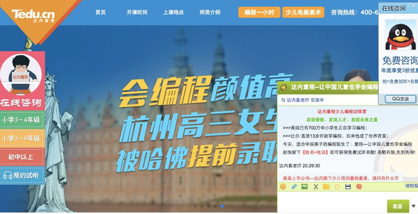 进入童程的页面,右下角会自动弹出一个咨询老师的对话框,询问家长对于孩子学习编程的兴趣。