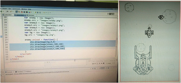 老师会带着孩子们写好创建一个“飞机大战”游戏界面的基本语句(这是界面,不包含交互等)。这是一节体验课后,学员可以呈现出的作品: