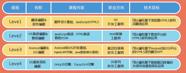 Level 4 : 3D虚拟现实编程,学习3D技术或虚拟现实技术的应用编写。