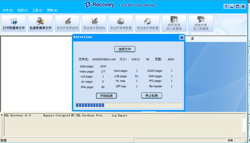 D-Recovery For MS SQL Server的另一项功能也非常有用,那就是数据库文件检查功能。检查数据库文件的目的是为了证实某个数据库文件数据页面是否符合相应的校验方式,数据库文件是由若干个数据页面组成,数据页面又分成不同的页面类型。每个数据页面必须符合一定的校验方式,若某个页面不符合相应的校验方式,我们就认为这个数据页面是错误的,是被破坏过的或者是轻微的错误造成的。如果检查某个数据库文件结果出现大量的err page,那么这个数据库文件受到的破坏也是相对比较严重的,数据恢复的结果就不会很理想。如果检查结果出现大量的null page,说明这个数据库文件大部分页面是空的,出现这种现象的可能性有两种,一种是用户创建数据库时分配的空间比较大,比如分配50GB的空间,实际上数据使用就是50MB;另一种情况是数据库文件内部损坏。