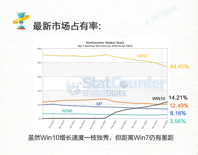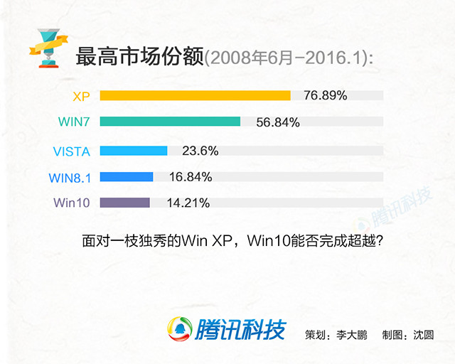 腾讯科技讯 1月6日消息,日前,微软在官方博客宣布,Windows 10已在全球超过2亿台设备上运行。其此前曾宣布,要达到在超过10 亿台设备上运行Windows 10的目标,目前在系统的普及速度上,Win10远好过它的前辈Win8和Win8.1,但现在,人们更关心的是,Win10能否超越Win7甚至WinXP?