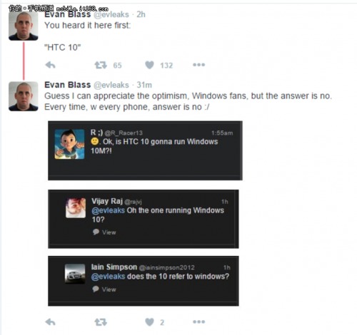 近期,关于HTC的全新旗舰HTC 10的消息被陆续曝光,由于其名字将HTC惯用的M系名字去掉,网友普遍猜测这是一款运行Win10 Mobile的全新设备。不过网友显然太乐观了,这项猜测马上被爆料大神@evleaks否决,他直言不讳地表示,HTC 10不会有Windows 10版本。近期的一项调查显示,Windows Phone的设备份额连1%都不到,微软想振兴Win10 Mobile,依靠和厂商合作已然是杯水车薪,自救任重而道远。