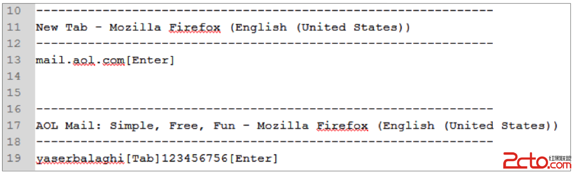在众多包含有窃取数据的键盘日志中,我们找到了一些令人震惊的发现:Rocket Kitten的攻击活动实际上感染了自己的工作站,似乎是“测试运行”了woolger。攻击者没有从C&C服务器上清除这些文件,由此可见,攻击者缺少OPSEC意识。