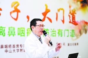 讲座现场有几位二三十年前接受放疗的老患者来咨询当年的主治医生马骏,由于语言功能受损,他们只能靠写字来和马骏交流。“早年放射治疗会留一些后遗症,看到他们无法说话,我很痛心。”马骏说,现在广东大医院陆续引进造价数十万元一台的先进的调强放疗设备,特别是随着马骏团队提出的鼻咽癌“精确放疗”策略被采纳为国际标准,现在放疗后遗症明显减少,能保留语言功能。