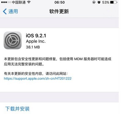 【手机中国 新闻】北京时间今天凌晨,苹果在今天正式发布了iOS 9.2.1,对iPhone和iPad系统进行了维护和安全升级。本次更新文件非常的小,只有38.1MB,也许它只是一个小更新。