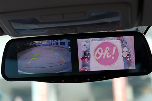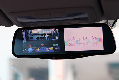 索菱境镜J200双屏幕显示智能后视镜画面显示左边为倒车摄像头画面,另外有倒车辅助线,对于新手来说很实用,右侧仍然显示的视频画面,在倒车进行时右侧画面会暂停播放,保障倒车安全。